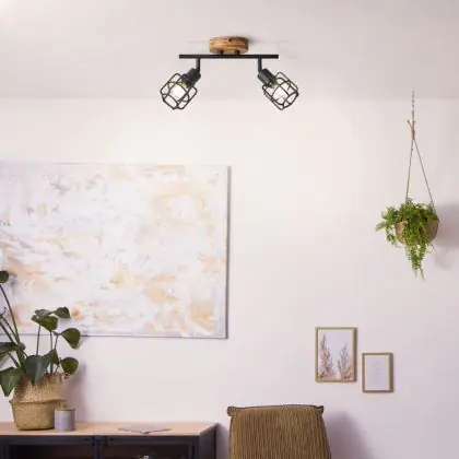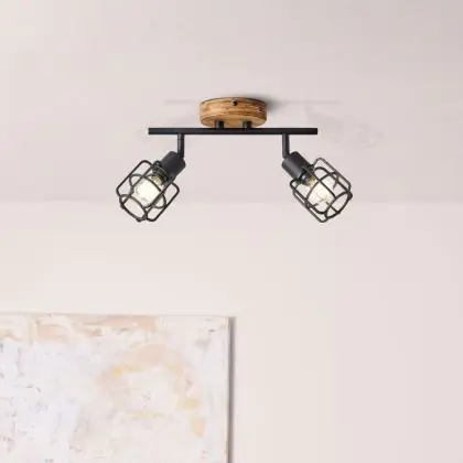 Brilliant Gwen Deckenleuchte Metall Holz Schwarz | Geeignet für 2x E14