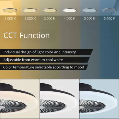 Beschreibung Brilliant Salerno Ventilator Plastik Metall Schwarz 36W 4700lm - 830-865 CCT+RGB | 485mm - Fernsteuerung Dimmbar