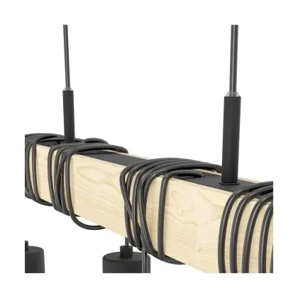 Beschreibung Eglo Pendelleuchte Townshend 5 Stahl Holz Schwarz | IP20 - Geeignet für 4x E27
