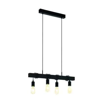Die Eglo Pendelleuchte Townshend Stahl Holz Schwarz | IP20 - Geeignet für 4x E27 sorgt für eine angenehme Ausleuchtung und punktet durch modernes Design. Diese Leuchte ist speziell zur Montage an der Decke vorgesehen.