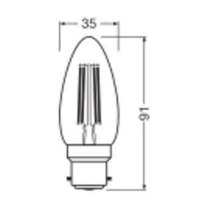 Die Ledvance Classic LED B22 Kerze Fadenlampe Klar 3.4W 470lm - 827 Extra Warmweiß | Ersatz Für 40W ist eine effiziente B22 (Bajonettsockel) LED-Lampe mit Retrodesign und der perfekte Ersatz für Ihre konventionellen 40W Lampen mit B22 (Bajonettsockel). Zudem strahlt sie Licht in der Farbtemperatur aus und punktet durch eine lange Lebensdauer.