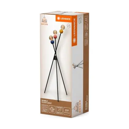 Die Ledvance Decor Glaskugel Stehlampe Mehrfarbig | Geeignet für 3X E27 von Ledvance verbindet modernes Design mit funktionaler Beleuchtung. Dank der E27-Fassung haben Sie die Möglichkeit, ein Leuchtmittel Ihrer Wahl einzusetzen und so Helligkeit und Lichtfarbe flexibel an Ihre Bedürfnisse anzupassen. Bitte beachten Sie, dass das Leuchtmittel nicht im Lieferumfang enthalten ist und separat erworben werden muss.