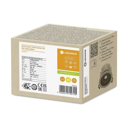 Beschreibung Mehrfachpackung 10x Ledvance LED SPOT FIRE RATED Aluminium 8W 680lm 36D - 930 Warmweiß | Ausschnitt 68mm - IP65 - Höchste Farbwiedergabe - Dimmbar