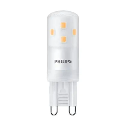 Die Mehrfachpackung 10x Philips CorePro LED Capsule G9 Matt 2.7W 300lm - 827 Extra Warmweiß | Dimmbar - Ersatz Für 25W ist eine effiziente G9 LED-Lampe und der perfekte Ersatz für Ihre konventionelle Halogenlampe mit W und einem G9-Sockel. Die Stifte haben einen Abstand von 9 mm. Zudem strahlt das Produkt Licht in der Farbtemperatur 2700K - Extra Warmweiß aus und punktet durch eine lange Lebensdauer.
