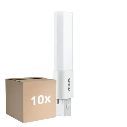 Die Mehrfachpackung 10x Philips CorePro PL-S LED 3.5W - 830 Warmweiß | 2-Pins - Ersatz Für 7W ist eine effiziente LED-Energiesparlampe und der perfekte Ersatz für Ihre konventionelle Kompaktleuchtstofflampe. Zudem strahlt das Produkt Licht in der Farbtemperatur aus und punktet durch eine lange Lebensdauer.