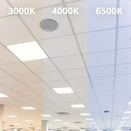 Das LED-Panel kommt mit der Farbtemperatur 3000K - Warmweiß daher. Als Faustregel gilt: Je niedriger der Kelvinwert, desto gemütlicher wirkt das Licht.