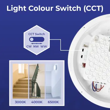 Die Noxion LED-Wand- und Deckenleuchte Pro V2 12/16/20W 2400lm - 830-840-865 CCT | 325mm - IP65 - 3 Stunden Notlicht + Augenlid Ring Weiß ist eine Feuchtraumleuchte. Sie strahlt Licht in der Farbtemperatur aus und punktet durch eine lange Lebensdauer. Diese Leuchte ist speziell zur Verwendung in Feuchträumen (Keller, Waschräume, etc.) vorgesehen.