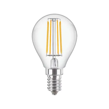 Die Philips Corepro LED Lustre E14 Kugel Fadenlampe Klar 4.3W 470lm - 827 Extra Warmweiß | Ersatz für 40W ist eine effiziente E14 LED-Lampe mit Retrodesign und der perfekte Ersatz für Ihre konventionellen 40W Lampen mit E14. Zudem strahlt sie Licht in der Farbtemperatur 2700K - Extra Warmweiß aus und punktet durch eine lange Lebensdauer.